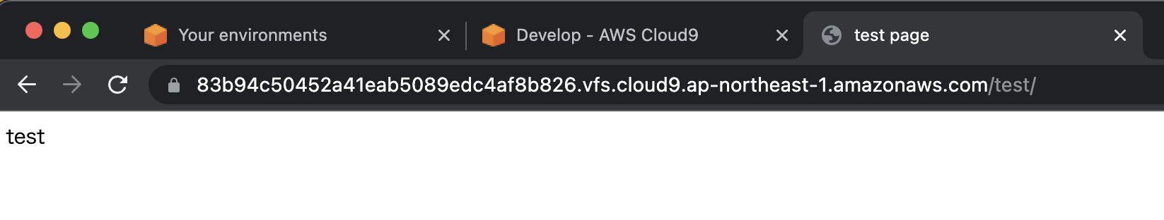 /test にアクセスすると、作成した HTML が表示されることが確認できました。