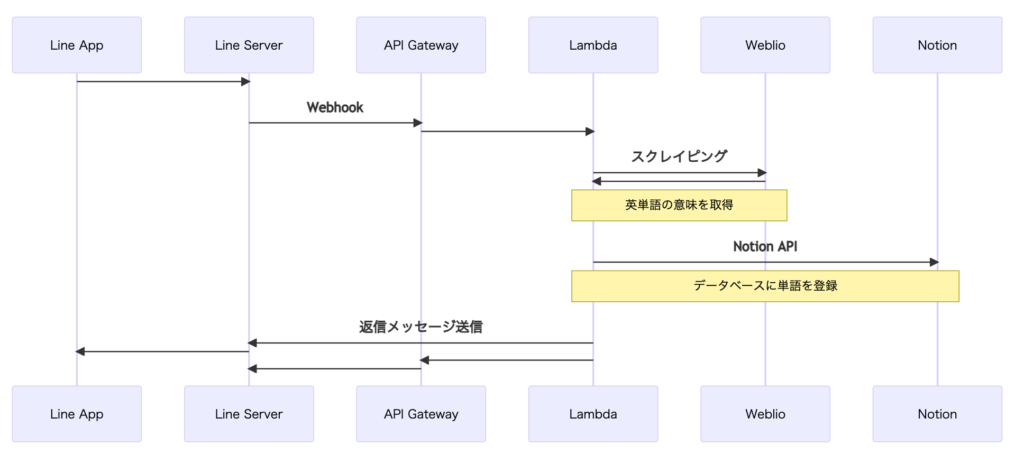 以前の記事で、Python と Notion API を利用して、英単語を検索して意味をノートにメモする作業を自動化しました。これをより利用しやすくするために、LINE から登録が行えるようにしたので、その手順についてまとめます。 前回の記事はこちら