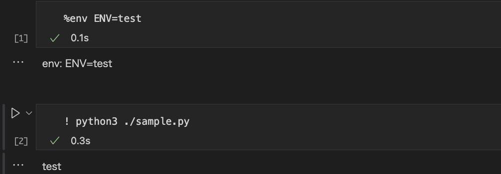 2つ目のコードブロックでは出力がNoneになっていることから、環境変数が1つ目のセルでのみ有効であることが確認できる。